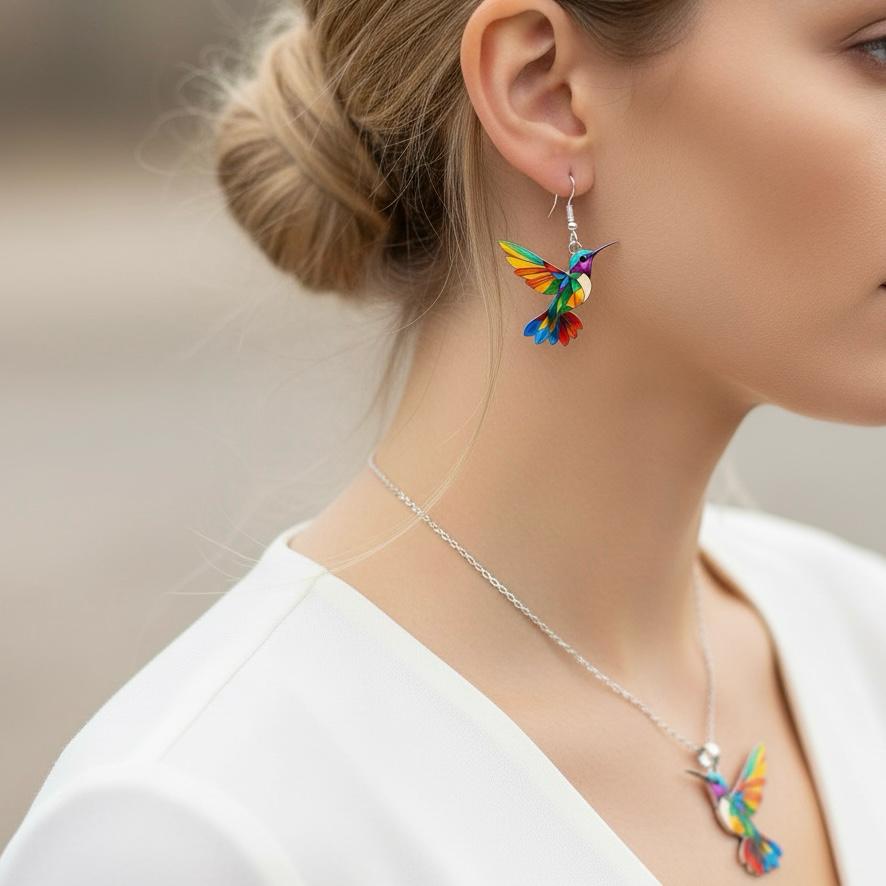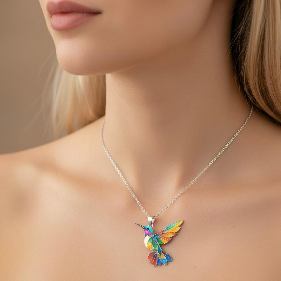 Treat yourself to a unique piece of jewelry that will turn heads. This magnificent hummingbird necklace, in vibrant rainbow colors, symbolizes freedom, joy, and positive energy. A true masterpiece that will add a touch of light to your style.